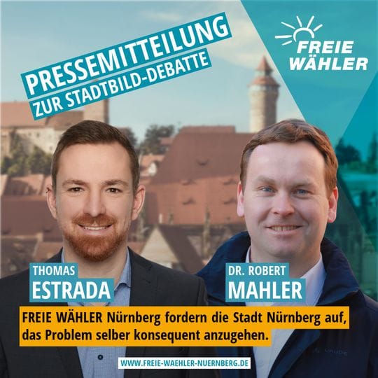 Die jüngsten Aussagen von CDU-Chef Friedrich Merz über das „Stadtbild“ haben bundesweit für Diskussionen gesorgt. Auch Nürnbergs Oberbürgermeister Marcus König hat dazu Stellung bezogen und den Bundeskanzler unterstützt. Für Thomas Estrada, Kreisvorsitzender der FREIEN WÄHLER Nürnberg und Oberbürgermeisterkandidat, steht fest: Die Diskussion darf nicht auf symbolische Sprachdebatten und Streit in der Bundesregierung reduziert werden – die Stadt Nürnberg kann und muss selber handeln. Dafür hätte sie jedenfalls ausreichend Kompetenzen.