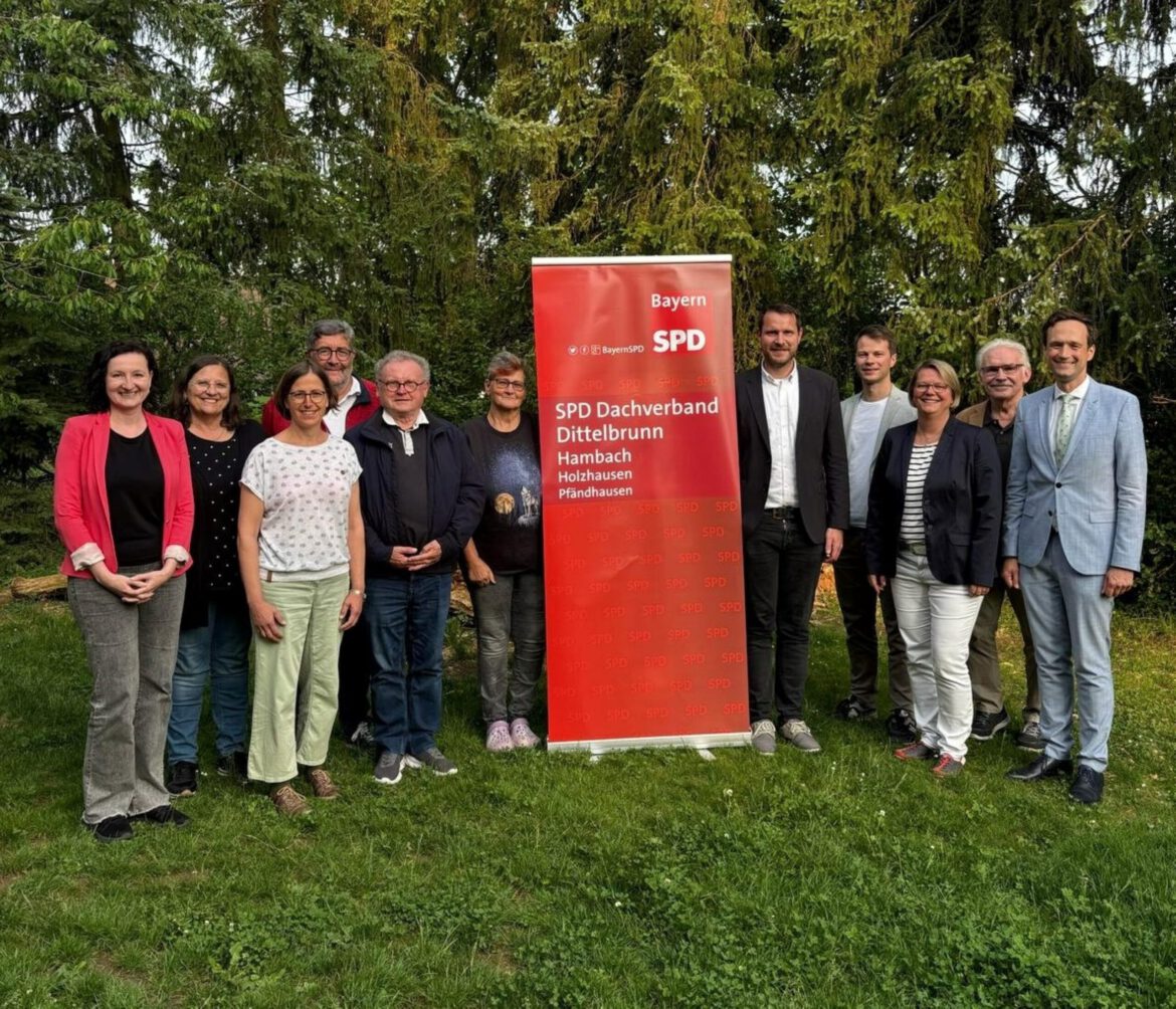 Die neue, 14-köpfige Vorstandschaft des SPD-Dachverbands Dittelbrunn präsentiert sich nach der Mitgliederversammlung mit Neuwahlen im Gasthaus Hühnernest in Hambach breit aufgestellt und gestärkt. Die beiden Vorsitzenden, der 2. Bürgermeister Holger Schmitt und Gemeinderätin Marie Arnold, begrüßten die zahlreich erschienenen Mitglieder.