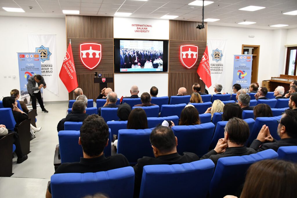 Kuzey Makedonya’nın başkenti Üsküp’te Türk Dünyası Mühendisler ve Mimarlar Birliğince (TDMMB) Türk dünyası hizmet ödülleri programı yapıldı. Uluslararası Balkan Üniversitesi (IBU) kampüsünde düzenlenen etkinliğe Milli Eğitim Bakan Yardımcısı Nazif Yılmaz, Türkiye’nin Üsküp Büyükelçisi Fatih Ulusoy, TDMMB temsilcileri, akademisyenler ve öğrenciler katıldı. Türk Dünyası Mühendisler ve Mimarlar Birliği Başkanı İlyas Demirci (fotoğrafta) açıklamalarda bulundu.