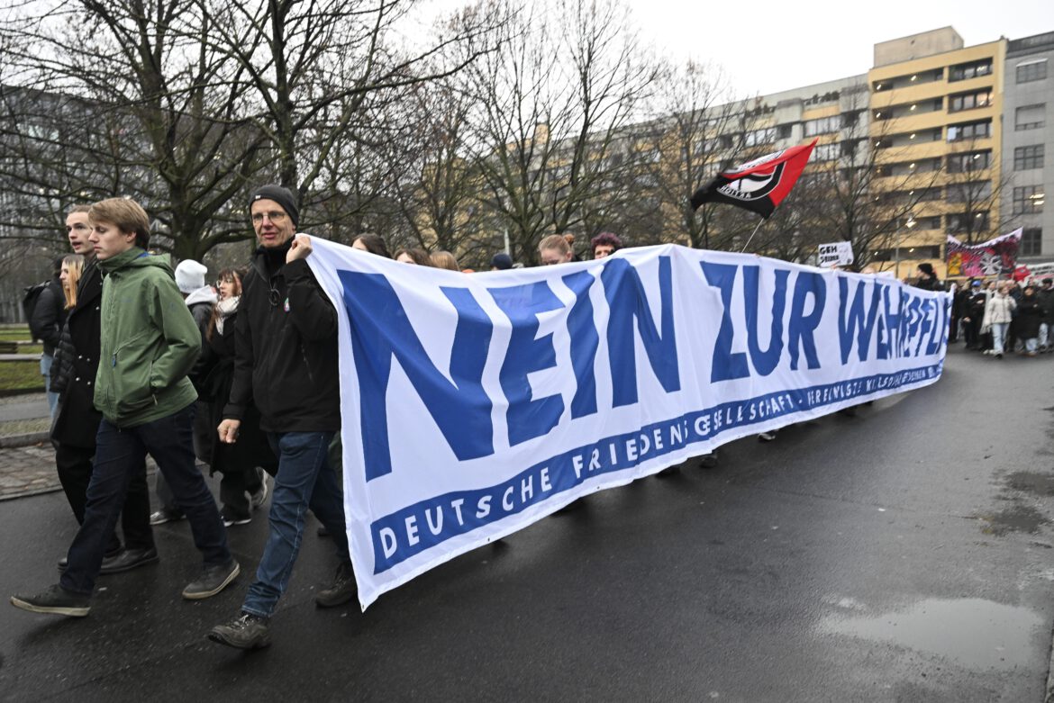 BERLİN (AA) – Almanya’da öğrenciler, Federal Mecliste kabul edilen ve asker sayısını artırmayı hedefleyen askerlik hizmetine ilişkin yasa tasarısını protesto etti.