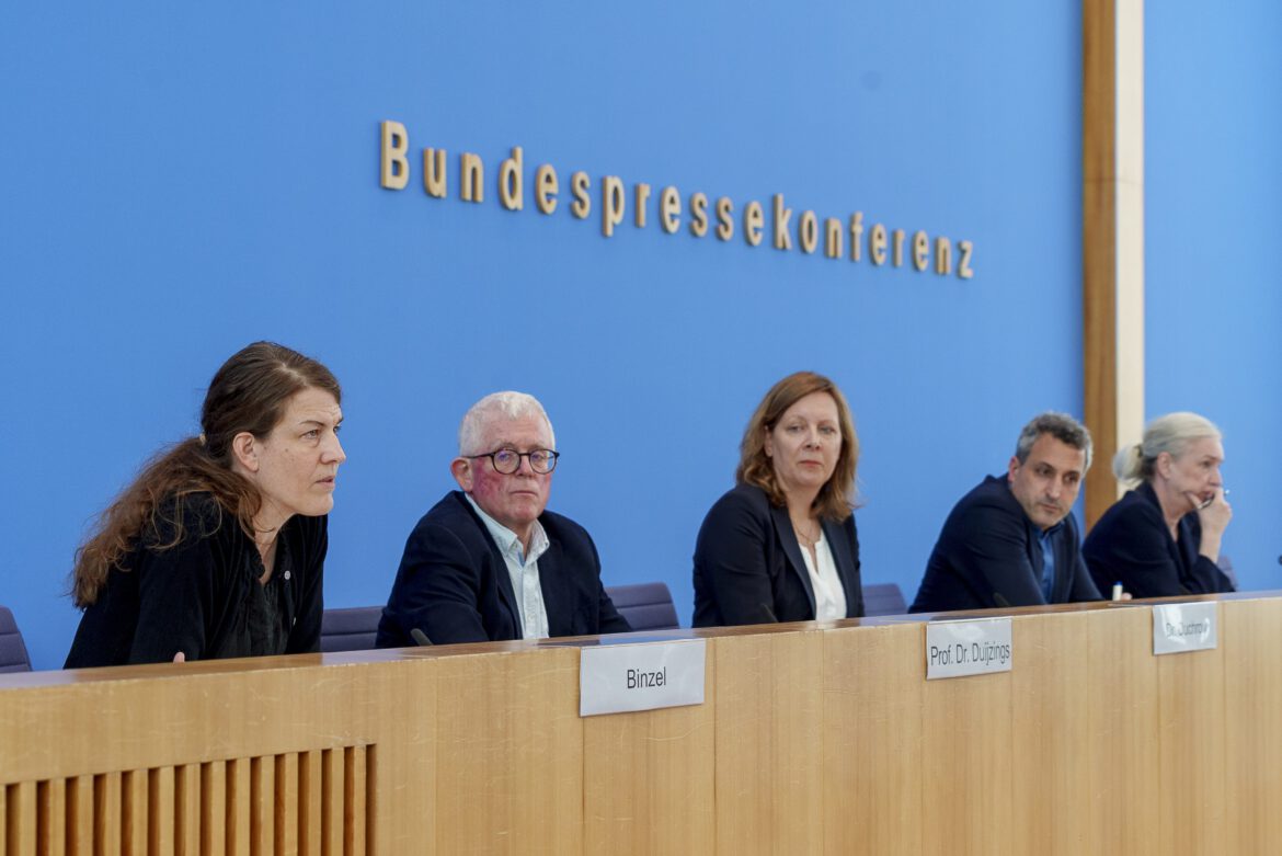 Başkent Berlin’de Medico International Derneğinin Orta Doğu Sorumlusu Riad Othman, Uluslararası Af Örgütünün (AI) Almanya Genel Sekreteri Dr. Julia Duchrow, Regensburg Üniversitesi Öğretim Üyesi Prof. Dr. Ger Duijzings ve Erlangen-Nürnberg Friedrich-Alexander Üniversitesi Öğretim Üyesi Prof. Dr. Christine Binzel, Gazze’deki insani durum, Avrupa Birliği (AB) ve Almanya’nın rolüne ilişkin basın toplantısı düzenledi.