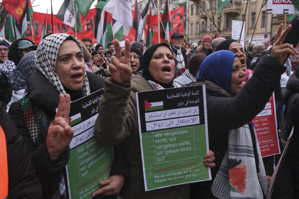 BERLİN (AA) – Almanya’nın başkenti Berlin’de, İsrail’e yaptırım uygulanması talebiyle Filistin’e destek gösterisi yapıldı.