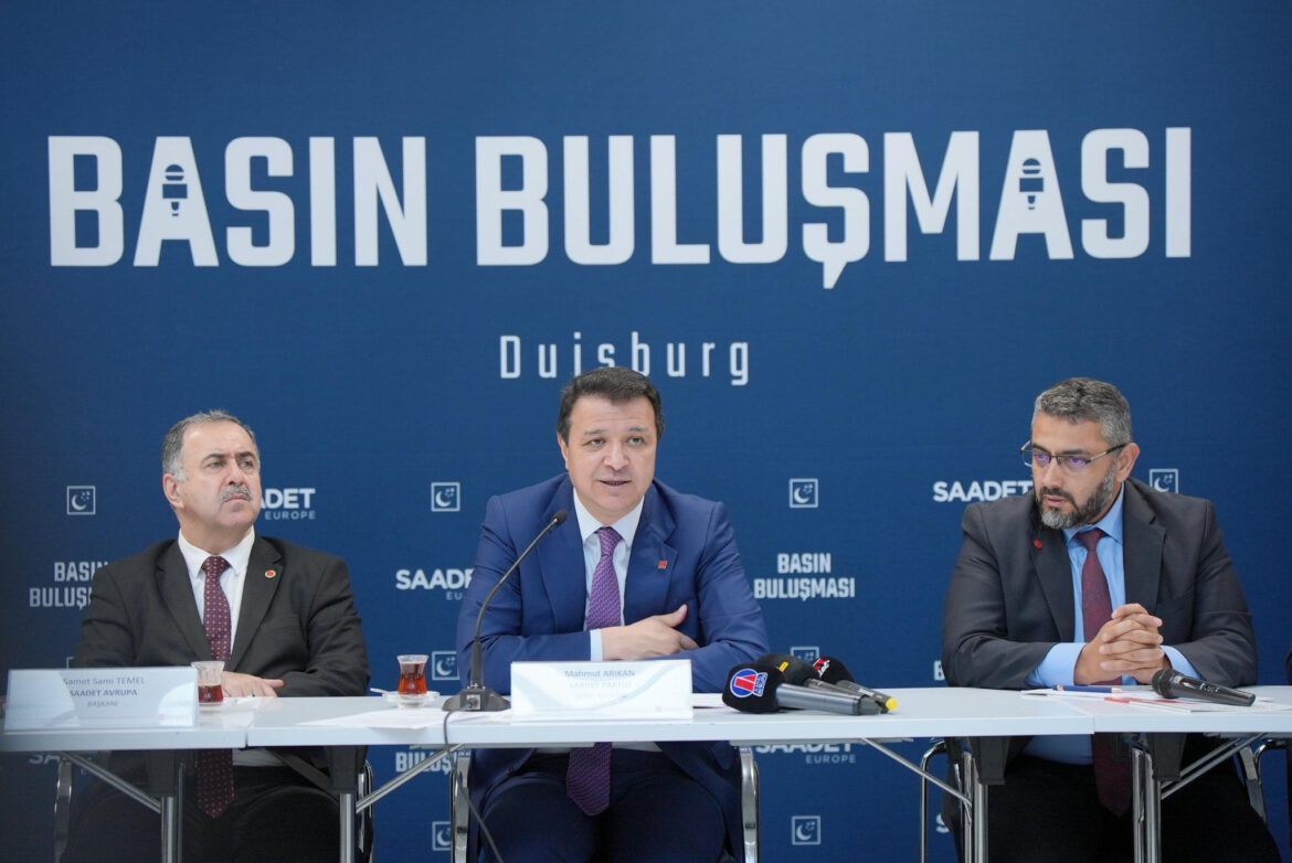 Saadet Partisi Genel Başkanı Mahmut Arıkan, 28 Haziran’da Almanya’nın Duisburg kentinde gerçekleştirilen kahvaltılı basın toplantısında basın mensuplarıyla bir araya geldi. Toplantıya Saadet Avrupa Başkanı Sami Samet Temel ve çok sayıda basın mensubu da katıldı.