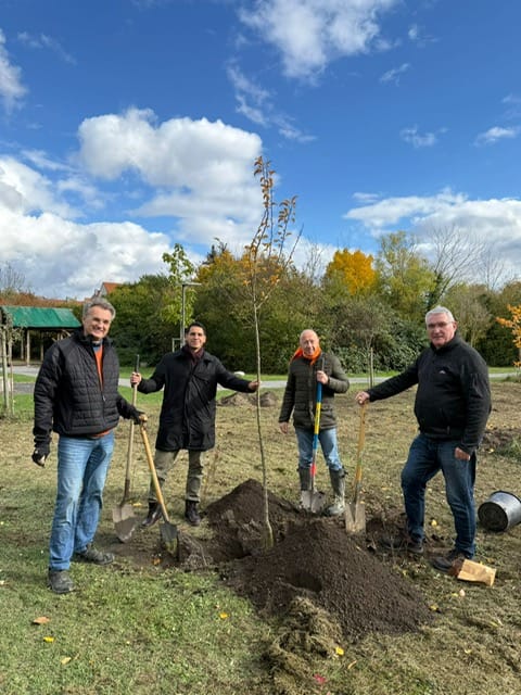 Geçtiğimiz hafta Kitzingen’de, Alman geleneklerinde özel bir yere sahip olan Baupflanz geleneği Freie Wähler tarafından yeniden yaşatıldı. “ALS-Challenge” etkinliği kapsamında, geçmişten günümüze unutulmaya yüz tutmuş geleneklerin hatırlanması ve topluma fayda sağlayan bu tür geleneklerin sürdürülmesi adına önemli bir adım atıldı. Bu çerçevede, Kitzingen’in geleceği için büyük beklentiler taşıyan FWB-Kitzingen Grubu, şehirdeki bahçe sergisi alanına bir armut ağacı dikerek hem Kitzingen halkının kadim geleneklerini yaşattı, hem de siyasetin toplumla el ele verdiğinde nasıl anlam kazandığını gösterdi.