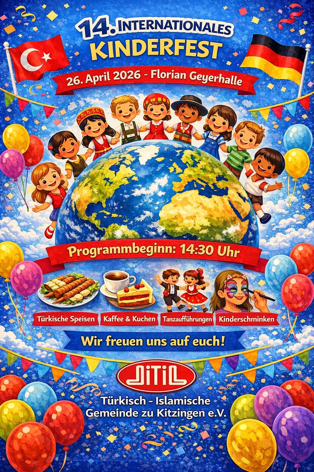Almanya’nın Kitzingen kentinde 23 Nisan coşkusu, uluslararası bir organizasyonla kutlanmaya hazırlanıyor. DİTİB Türkisch-İslamische Gemeinde zu Kitzingen e.V. tarafından bu yıl 14’üncüsü düzenlenen Uluslararası Çocuk Festivali, 26 Nisan 2026 tarihinde Florian Geyerhalle’de gerçekleştirilecek. Saat 14.30’da başlayacak etkinlik, farklı kültürlerden çocukları bir araya getirerek çok kültürlü bir etkileşim ve kaynaşma zemini oluşturmayı hedefliyor.