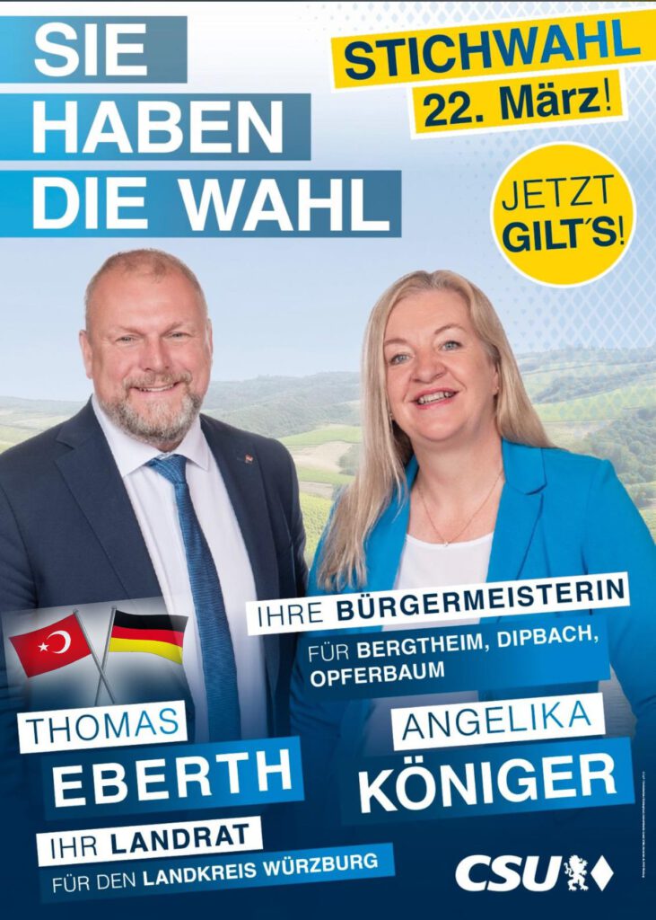 22 Mart’ta yapılacak Stichwahl öncesinde seçim yarışının büyük bir heyecanla devam ettiği Landkreis Würzburg’da gözler şimdi ikinci tur sonuçlarına çevrilmiş durumda.