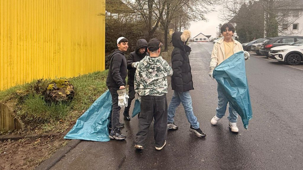 Leverkusen DİTİB Mimar Sinan Camii ve belediye iş birliği içinde yürütülen proje kapsamında, hafta sonu eğitimleri için camiye gelen çocuklar cami çevresinde temizlik çalışması yaptı.