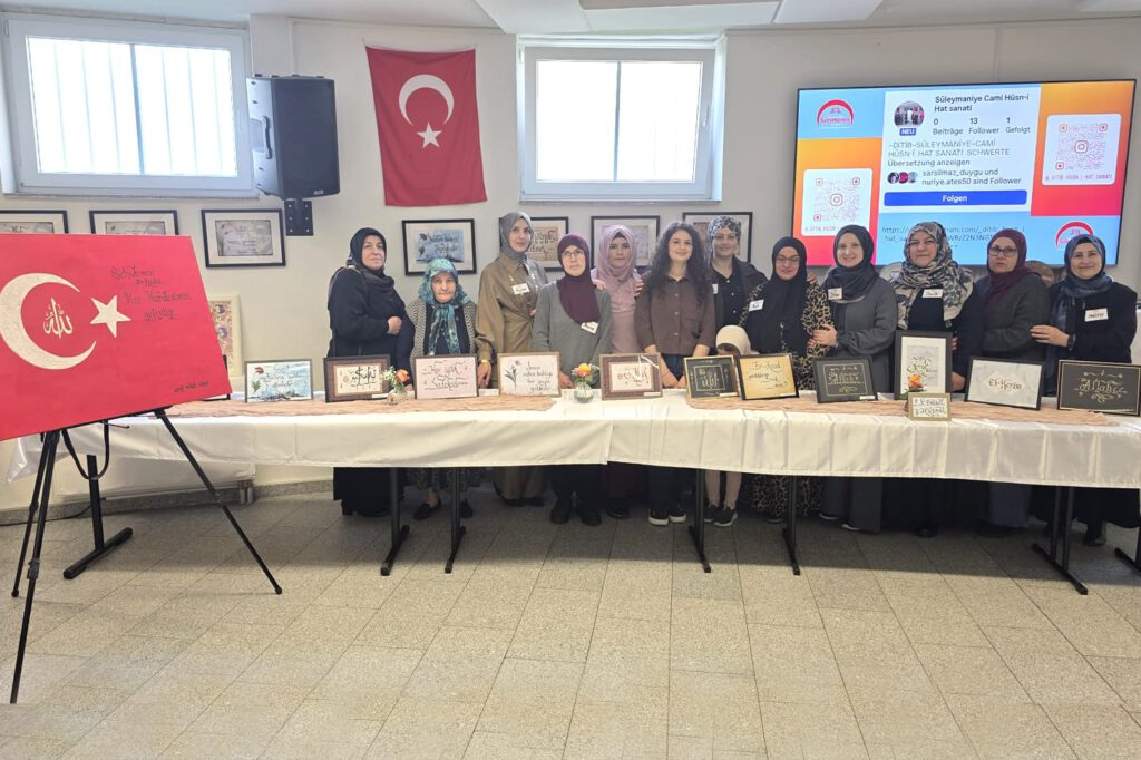 Schwerte DİTİB Süleymaniye Camii’nde kaligrafi-hat sanatı eğitmeni Muhammet Tanrıkulu tarafından verilen kursu tamamlayan gönüllü kadınlar, hazırladıkları yaklaşık 150 eseri sergiledi.