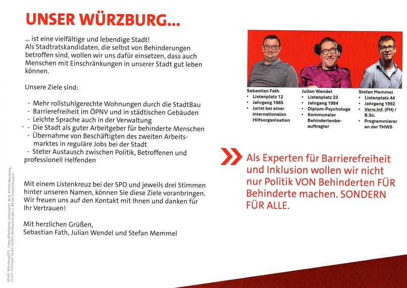 “Entegrasyon tam anlamıyla gerçekleştiğinde, bu toplumun tüm kesimlerinin refah ve mutluluk seviyesinin yükselmesi demektir” diyen Räth, entegrasyonun baskı ya da zorlamayla değil, karşılıklı saygı ve gönüllü katılımla sağlanabileceğinin altını çizdi. Würzburg’un çok kültürlü yapısının bir zenginlik olduğunu belirten SPD’li aday, bu çeşitliliğin yerel yönetim politikalarında daha görünür ve etkin şekilde temsil edilmesi gerektiğini savundu.
