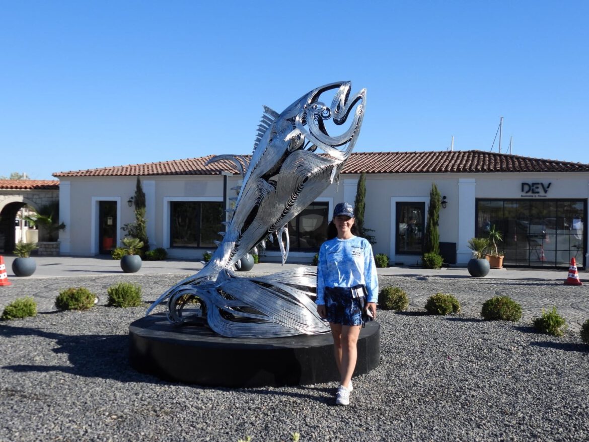 “Murat Bey benimle Instagram üzerinden iletişime geçti. Bir hayali vardı; burada yaşanan tutkuyu yansıtmak. Benim sanatımın tutkusuyla, denizin tutkusunu birleştirince ortaya bu eser çıktı. Eseri yaparken asıl ilham kaynağım balığın kendisinden çok, buradaki insanların tutkusu oldu. Hobilerine aşkla bağlı olmaları beni etkiledi. Geçen yıl misafir olarak geldiğimde bunu net bir şekilde görmüştüm ve heykelde de yansıtmak istedim. O balığın hırçınlığını, dalgadan çıktığı anı, o dinamikliğini ve hareketi verebilmek istedim. Benim tekniğimle de bu çok güzel örtüştü” diye konuştu.
