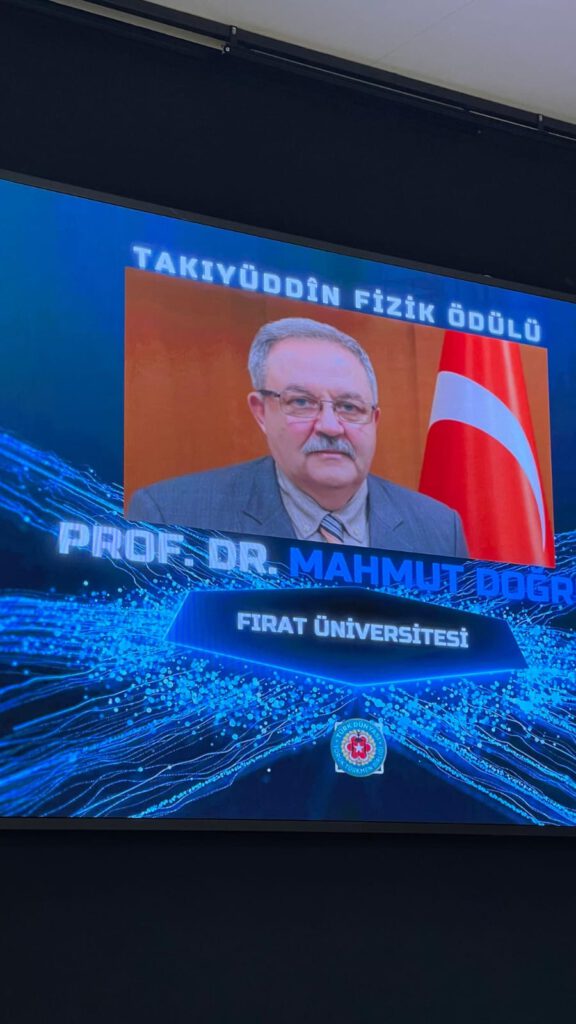 Fırat Üniversitesi Rektör Yardımcısı, (Bitlis Eren Üniversitesi Kurucu Rektörü ve Uluslararası TEKE Akademi Onursal Başkanı) Prof. Dr. Mahmut Doğru’nun Türk Dünyası Bilim Ödülleri kapsamında “Takıyüddîn Fizik Ödülü”ne layık görülmesi üniversitesinde, Elazığ’da ve Fizik camiasında da takdirle karşılandı.